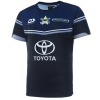 Take your training to the next level with the 2023 North Queensland Cowboys Alternate Training Tee. Inspired by the 2023 Training Singlet, this singlet replaces the navy bottom panel with a striking black. The iconic white and gold chevron strip is replaced with a white and grey colour combo.