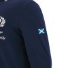The Official Scottish Rugby Home Cotton Jersey for the 2023 season. Navy shirt with royal blue details on the collar and cuffs, outlines of thistle leaves embossed on the flanks and the Scottish Rugby Crest embroidered over the heart. This traditional style poly cotton jersey is loose fit with long sleeves for those that love the classic rugby shirt style.