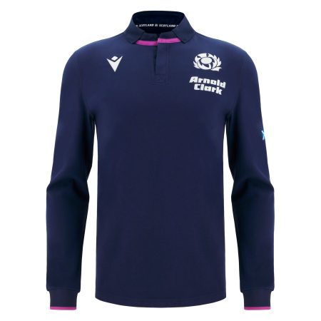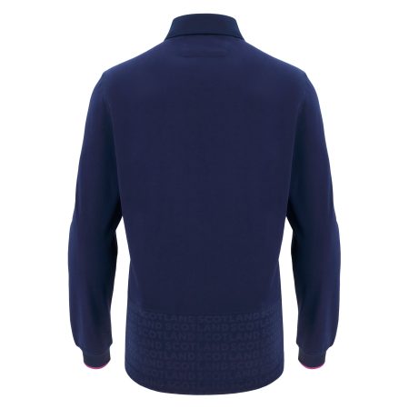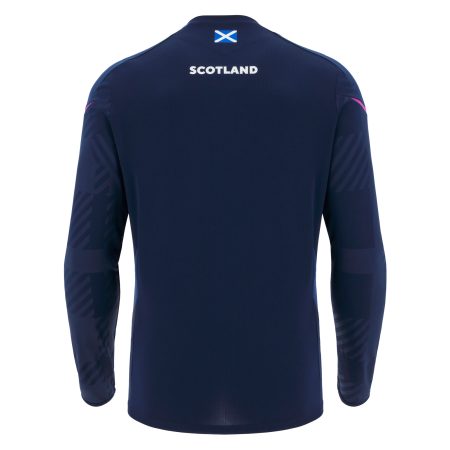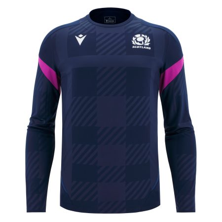 Scotland Rugby Short sleeve navy training tee with seagreen flashes on the shoulder and triangle pattern over the lower torso.