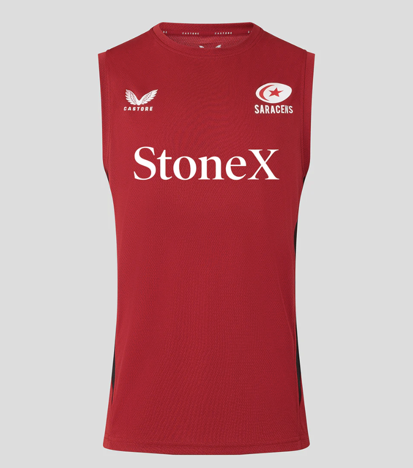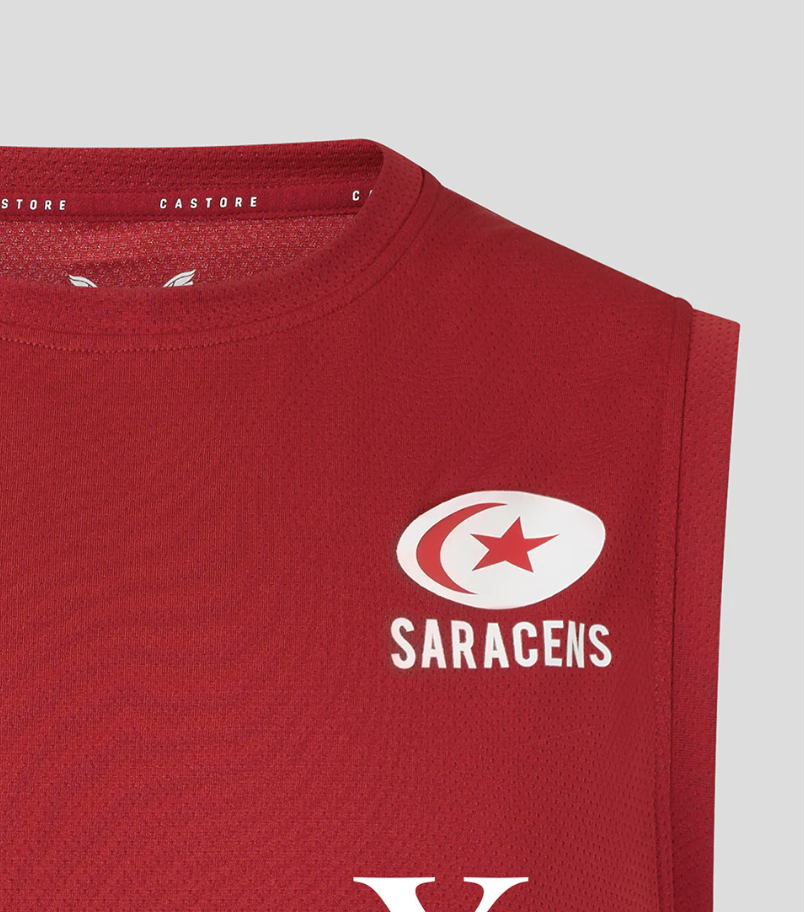 Train in style in the new 2025/26 Saracens Training Vest in Red.