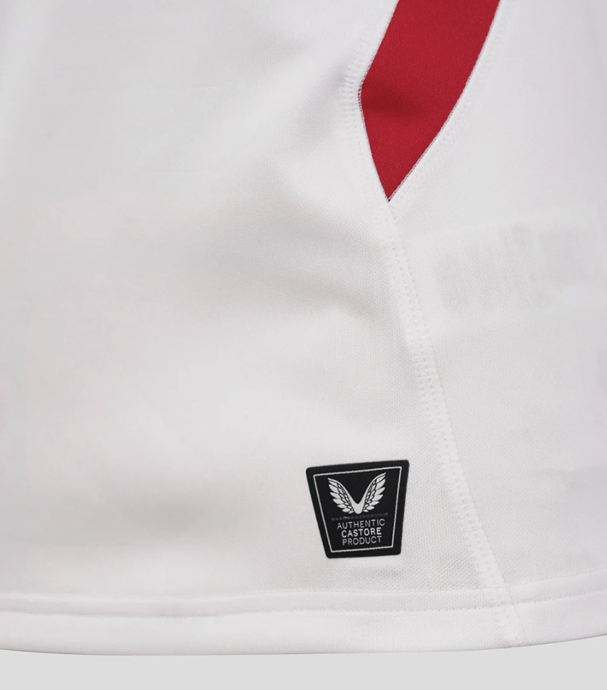 The chest proudly displays the England Rugby crest alongside Castore iconic brand logo, a tribute to 100 years of sporting excellence. A St. George Cross detail at the back neck adds a finishing touch of national pride. Made from 100% polyester knit, this officially licensed jersey ensures you’re ready to support the team in style.