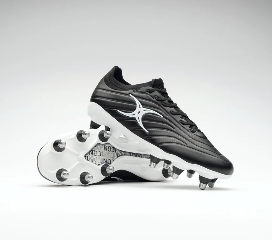 Gilbert Icon Power X 8S Rugby Boot – Black/White