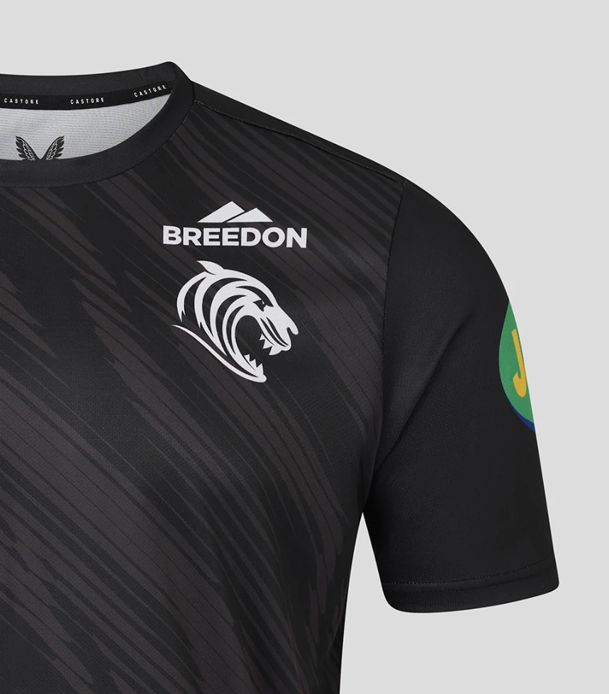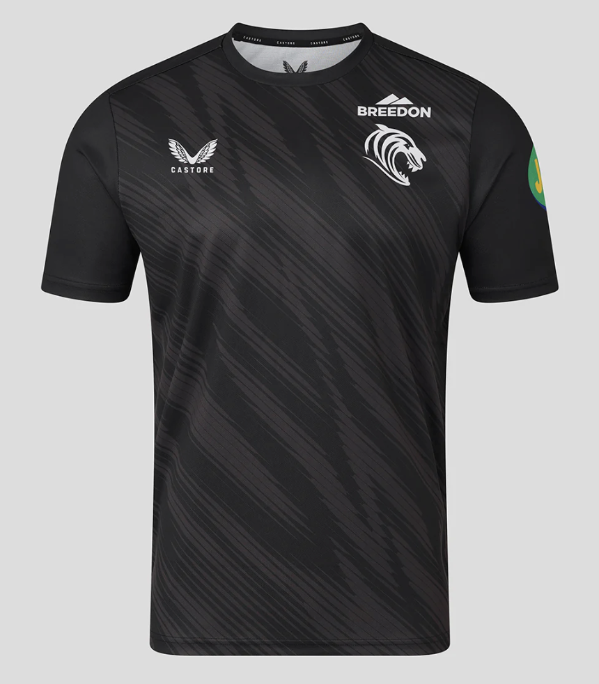 Roar in the stands with the brand new Leicester Tigers Men’s 25/26 Warm Up Tee in Black