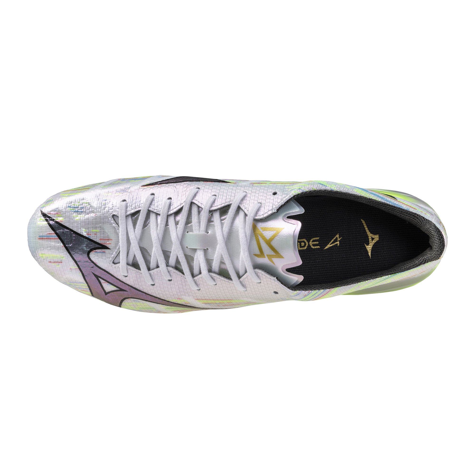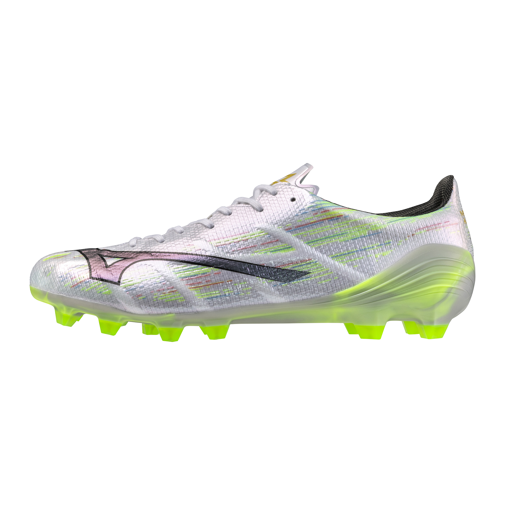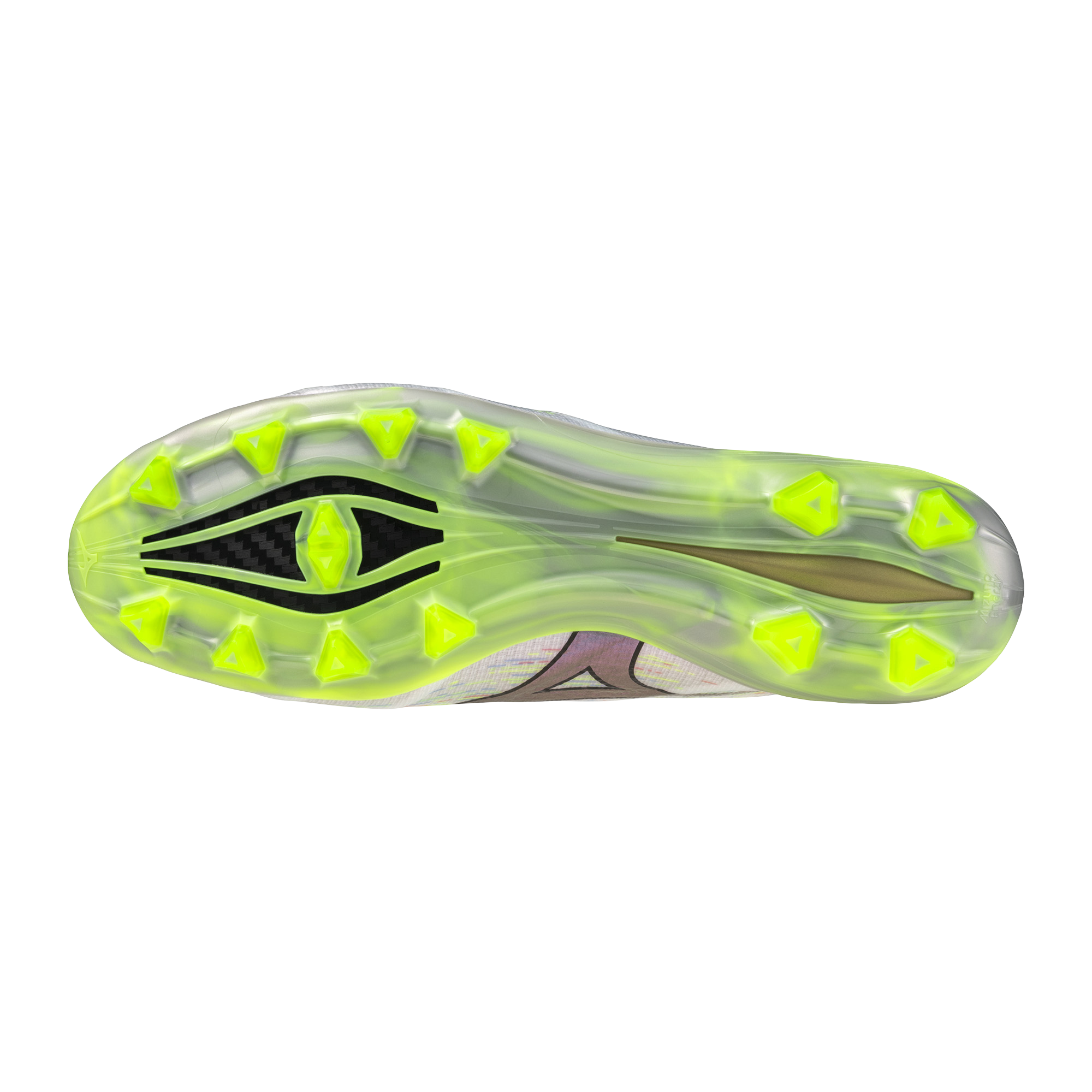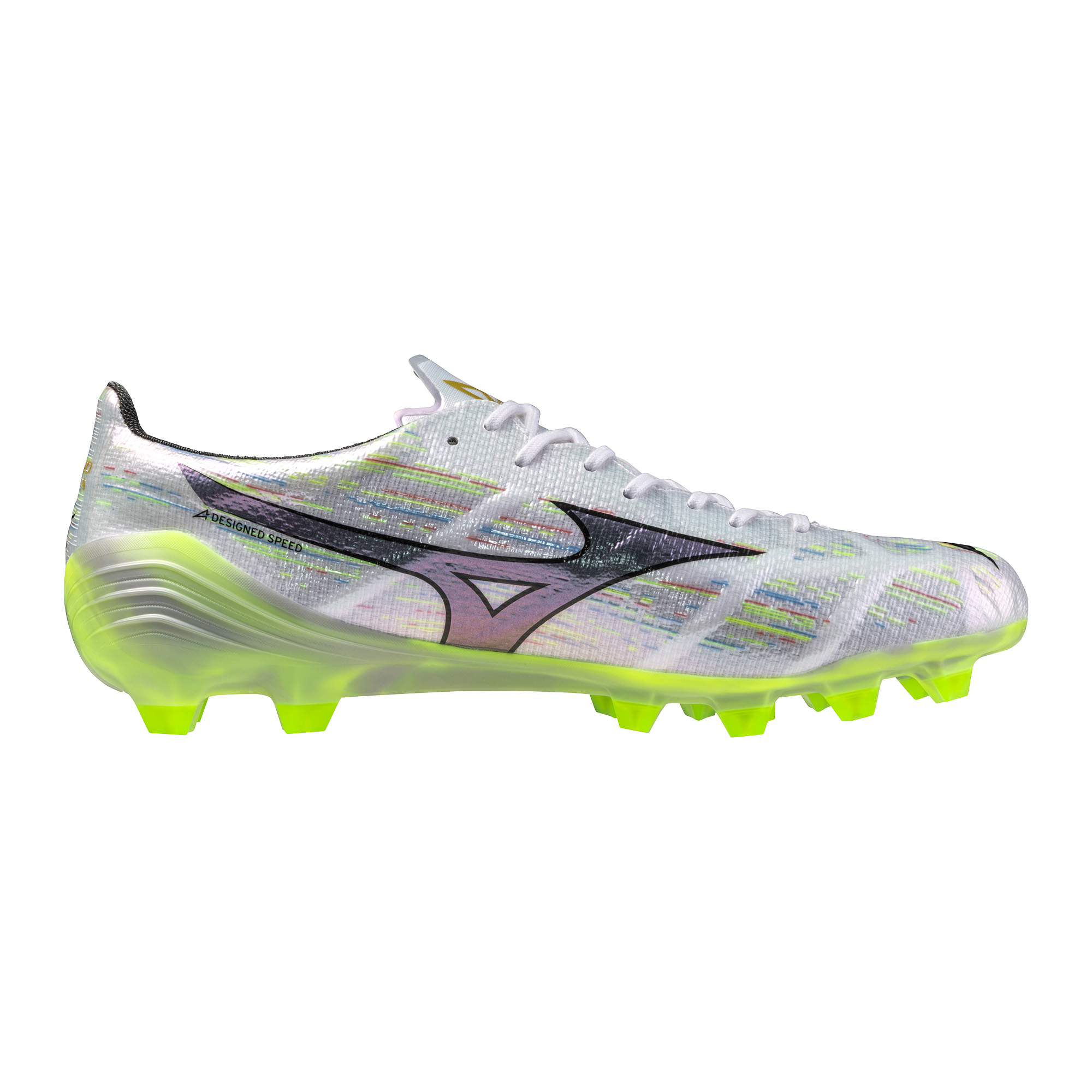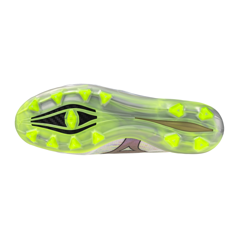 Entirely designed for speed. Mizuno Football‘s perfect fit realized through the Engineered Fit woven construction. Triangular studs to maximize the player‘s speed. Bare Foot insole board adopted to pursue a barefoot feeling.MIZUNO ENERZY Foam enables playing hard throughout the entire game.