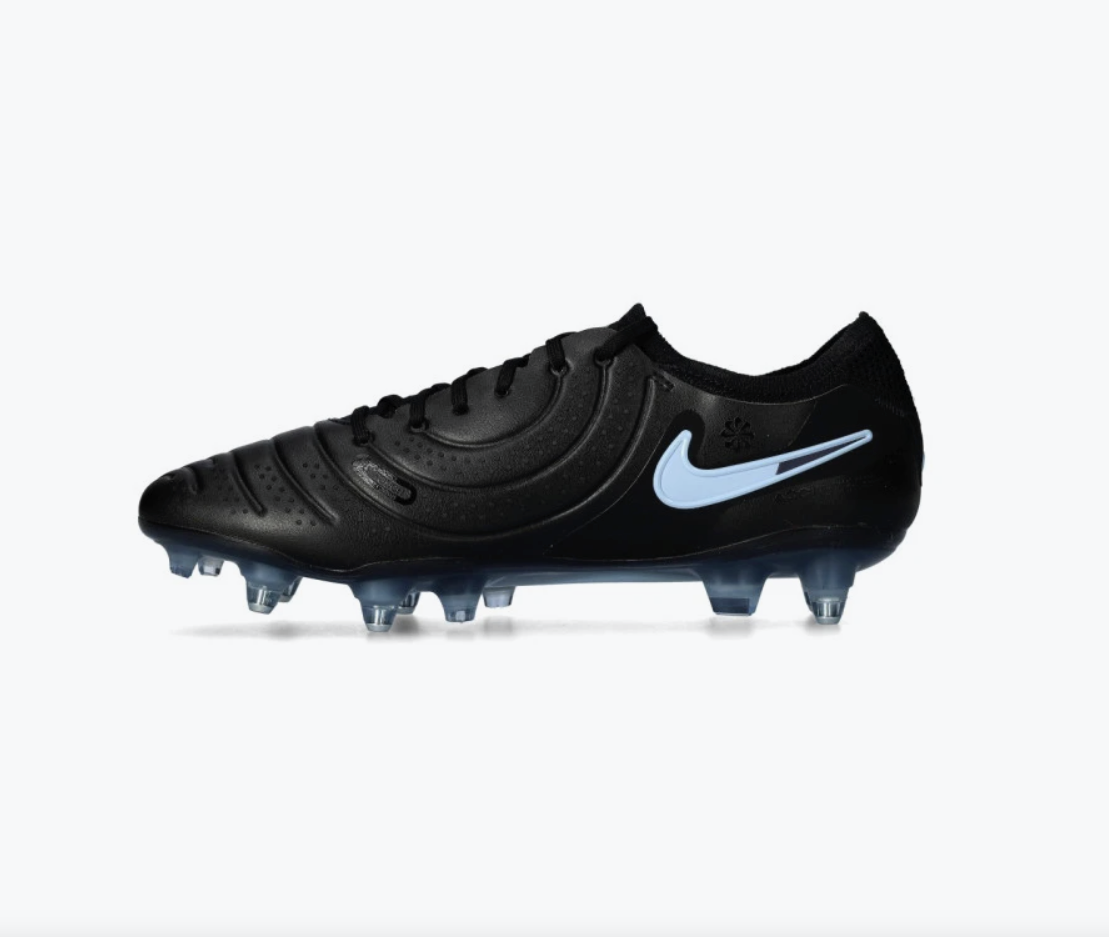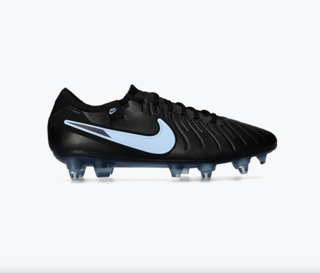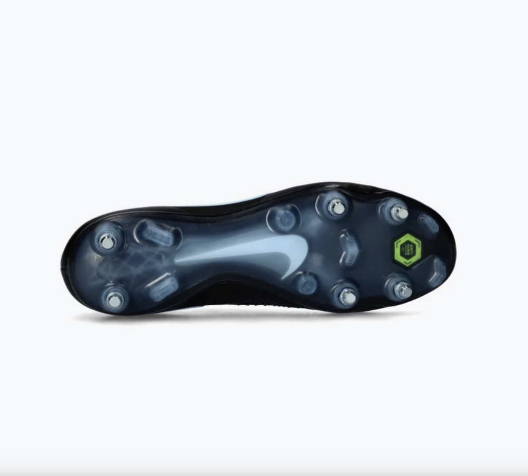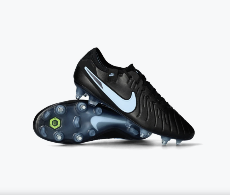 Nike Tiempo Legend 10 Elite SG-Pro AC football boot. Boots that include the new improved Flytouch Plus leather, for use on wet natural grass pitches. High-end boots in Mtlc Silver-Black-Volt colour.