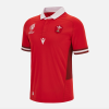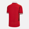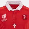 Rugby World Cup 2023 home replica shirt – two tone red relaxed fit shirt with traditional white buttoned collar, white pinstripe on the sleeve cuff and stretch panels under the arms. The Welsh Rugby and RWC France 2023 crests are embroidered on the chest and the lyrics of the National Anthem embossed on the lower back.