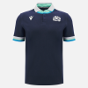 2024/25 home cotton shirt – navy relaxed fit, short sleeved shirt with white collar and cuffs with blue and green details, white Scotland crest embroidered over the heart and tribute to 100 years of Murrayfield Stadium on the rear.