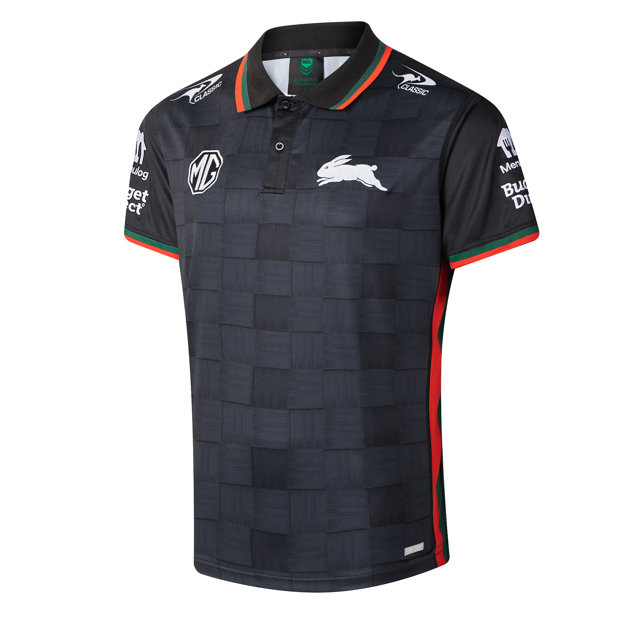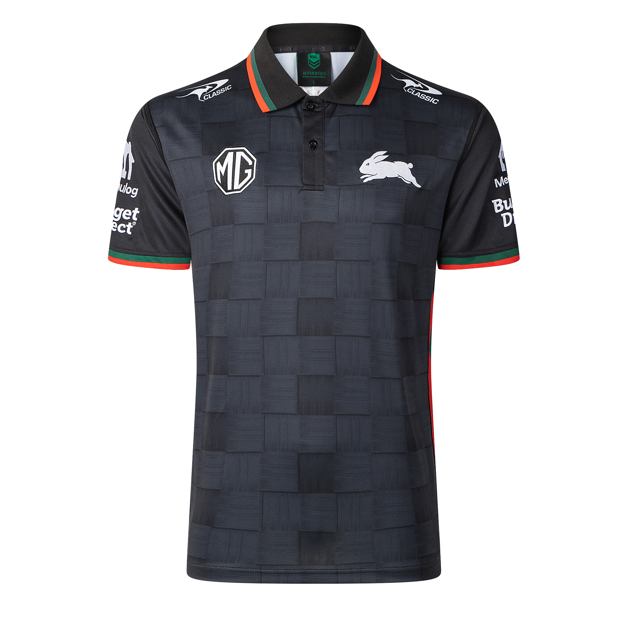 Support your NRL team with pride in the brand new Rabbitohs 2026 Mens Players Black Polo.