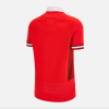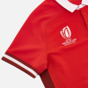The Wales Rugby World Cup 2023 home match fit shirt – two tone red slim fit shirt with traditional white buttoned collar, white pinstripe on the sleeve cuff and stretch panels under the arms. The Welsh Rugby and RWC France 2023 crests embroidered on the chest and the lyrics of the National Anthem embossed on the lower back.
