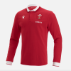 The Official Welsh Rugby Home Cotton Jersey for the 2021/23 season. Red shirt with tone on tone design across the lower back and white details on the collar and cuffs and the Welsh Rugby Crest embroidered over the heart. This traditional cotton jersey is loose fit with long sleeves for those that love the classic rugby shirt style.