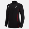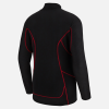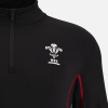 Black 1/4 zip training sweatshirt with red piping and embossed pattern over the sleeves and down the flanks.
