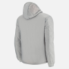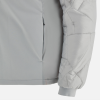 Grey padded bomber jacket with red hood lining and embroidered Welsh Rugby crest.