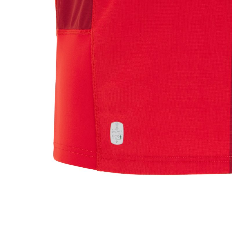Welsh Rugby 2025/26 home replica shirt – red relaxed fit shirt with two tone quartered design featuring an embossed Caernarfon pattern over the body and sleeves, white details on the collar and cuffs and embroidered logo over the heart.